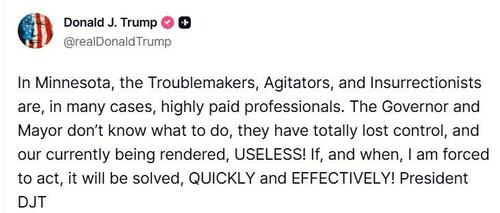 - “They’ve Totally Lost Control”; Trump Threatens ‘Agitators’ As Civil Unrest Soars In Minnesotaby Tyler Durden on January 17, 2026 at 1:05 am